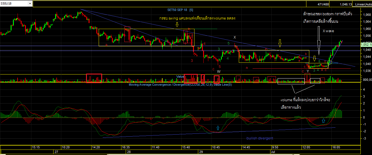 - เห็นกรอบราคา swing ขึ้นลงภายในกรอบ
